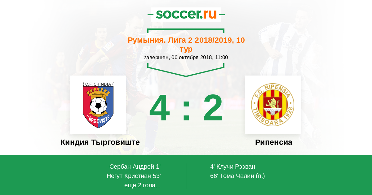 Протокол матча Киндия Тырговиште против Рипенсиа