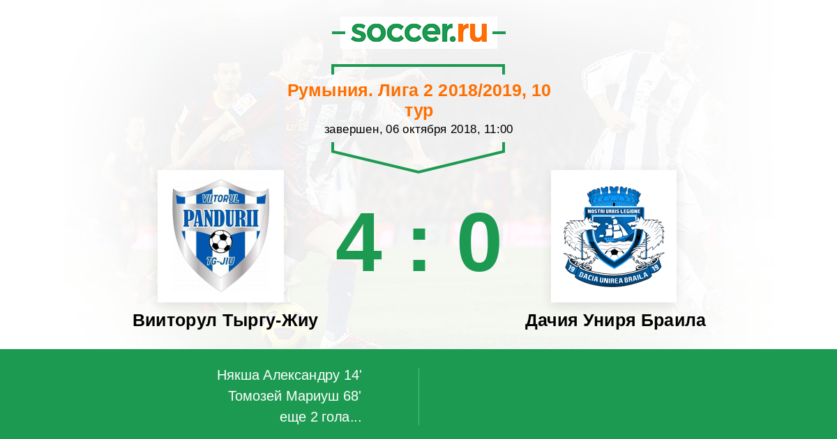 Протокол матча Вииторул Тыргу-Жиу против Дачия Униря Браила