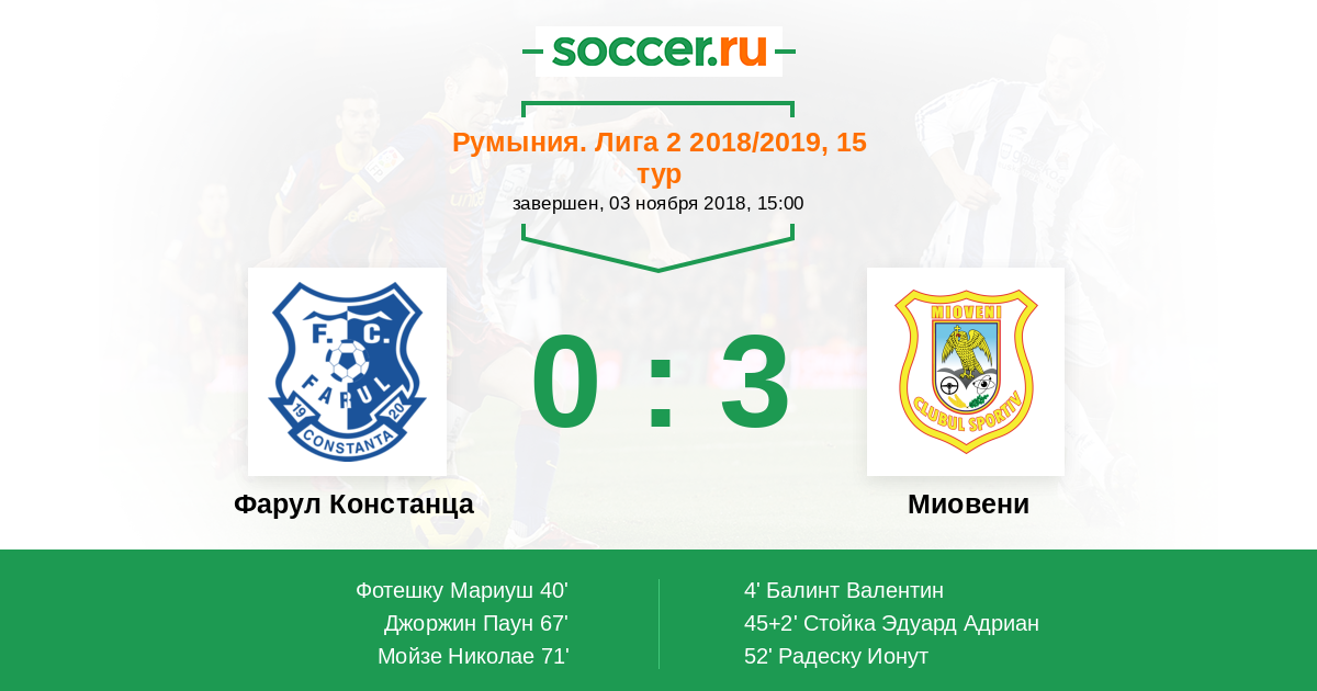Протокол матча Фарул Констанца против Миовени