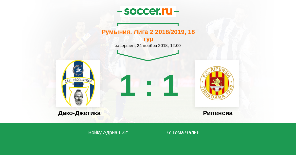Протокол матча Дако-Джетика против Рипенсиа