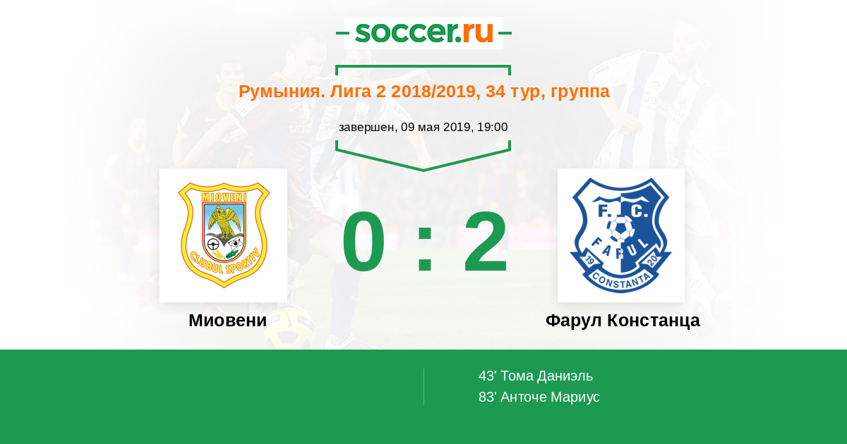 Протокол матча Миовени против Фарул Констанца
