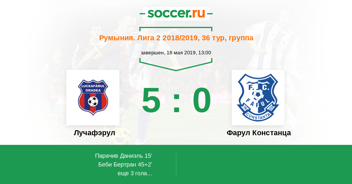 Протокол матча Лучафэрул против Фарул Констанца