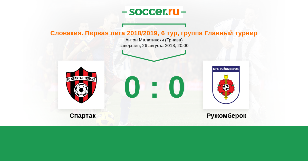 Словакия. Суперлига 24.08.2019 Ружомберок Логотип футбольный клуб Ружомберок 0:1 Логотип футбольный клуб Спартак (Трнава) Спартак