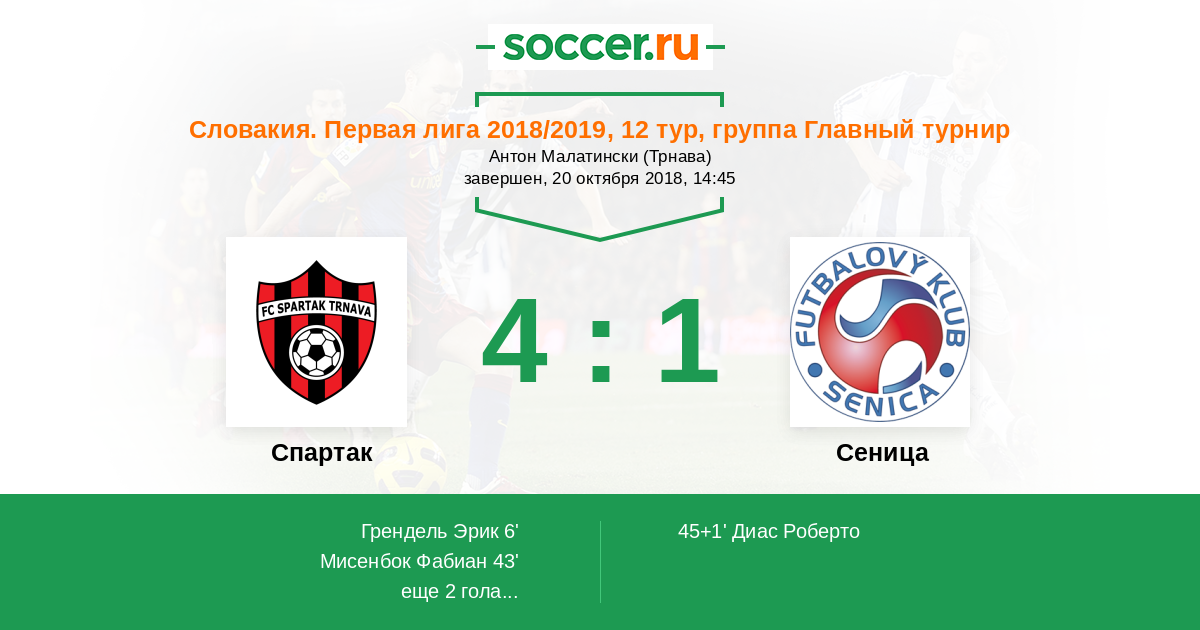 Протокол матча Спартак против Сеница