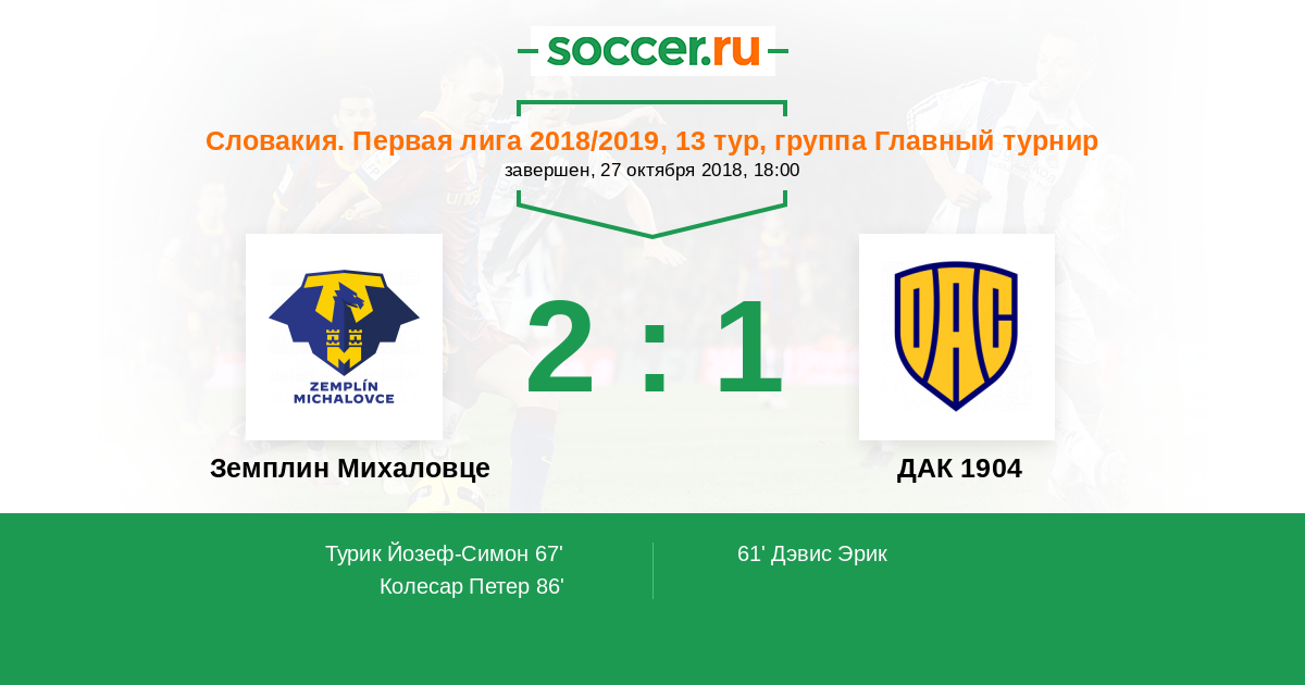 Протокол матча Земплин Михаловце против ДАК 1904