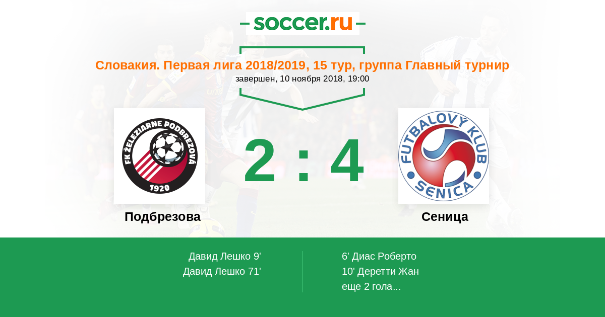Протокол матча Подбрезова против Сеница
