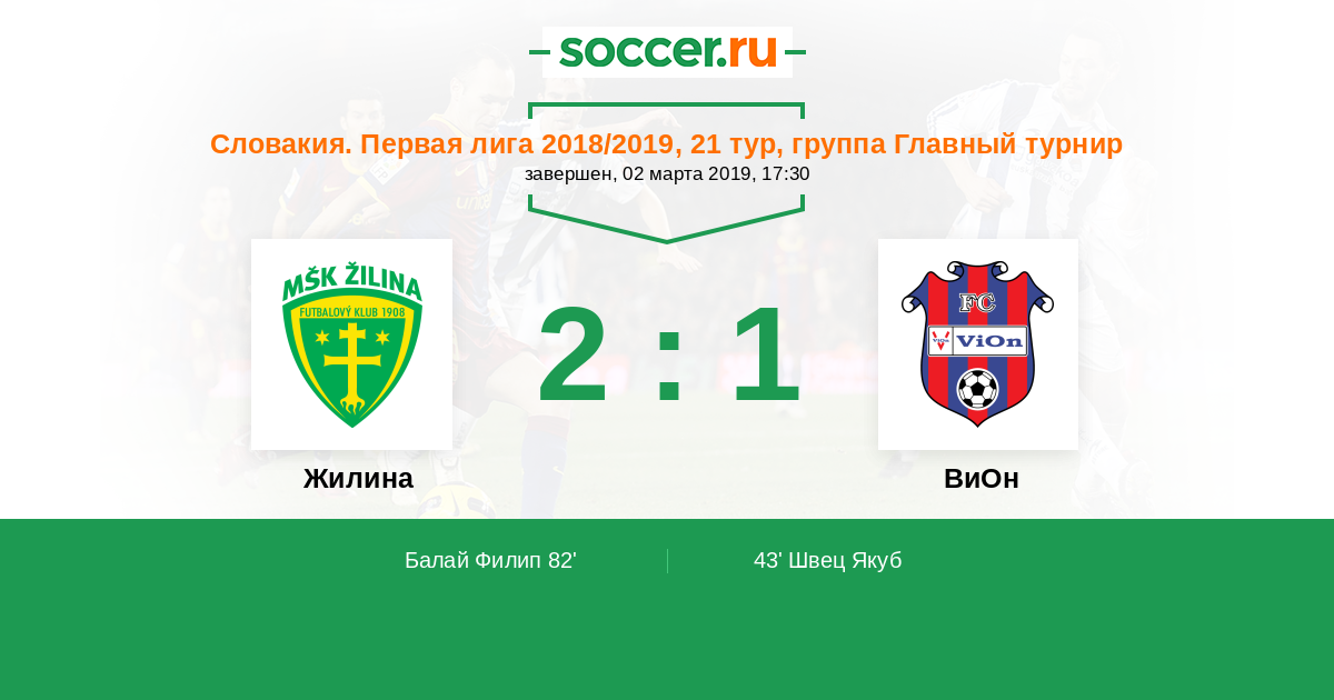 Протокол матча Жилина против ВиОн