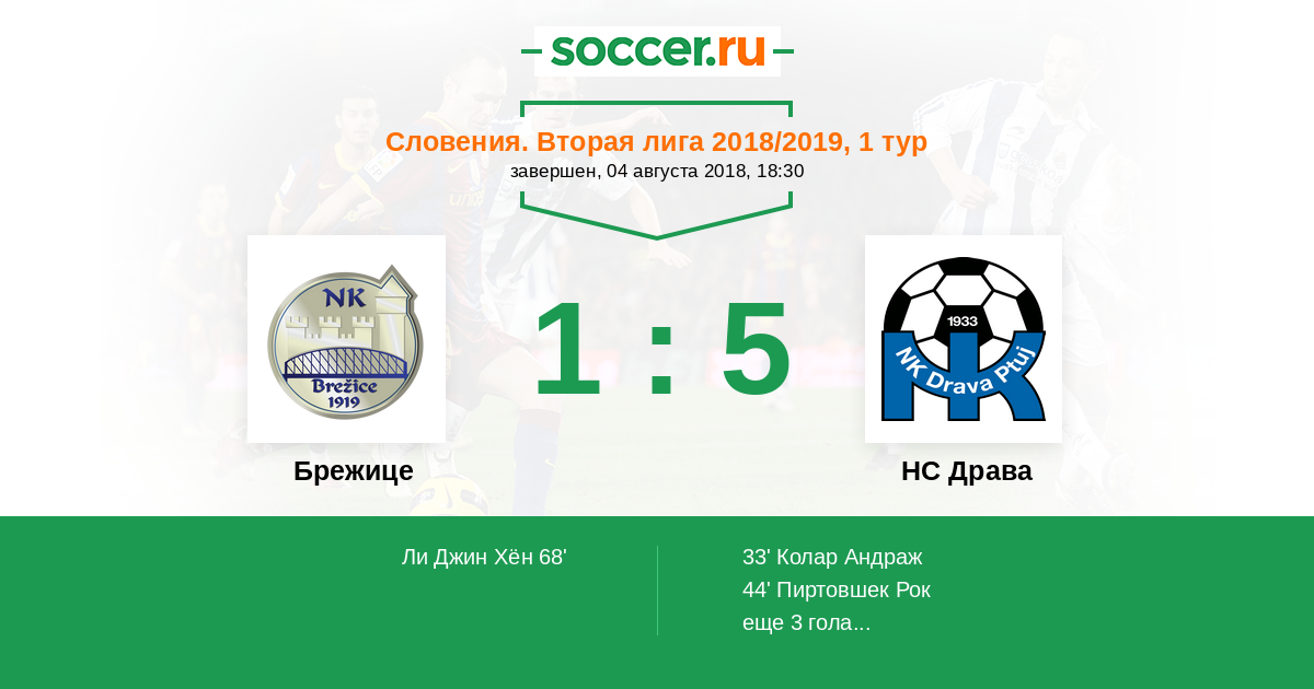Протокол матча Брежице против НС Драва