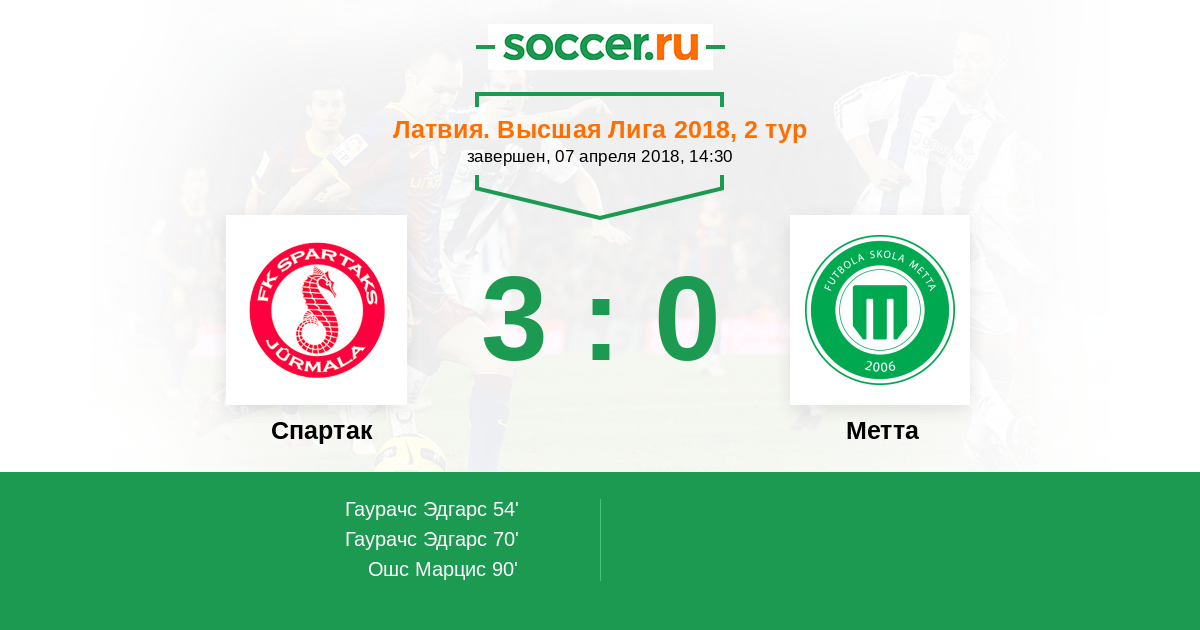 Протокол матча Спартак против Метта