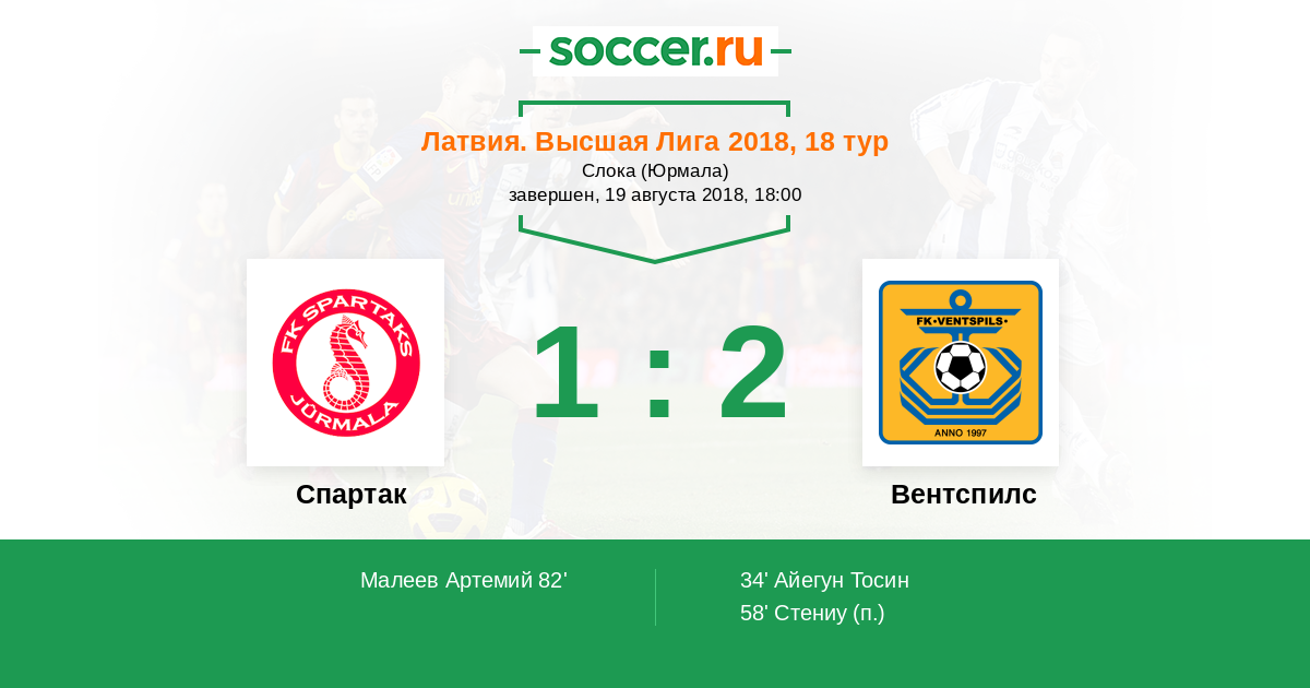Протокол матча Спартак против Вентспилс