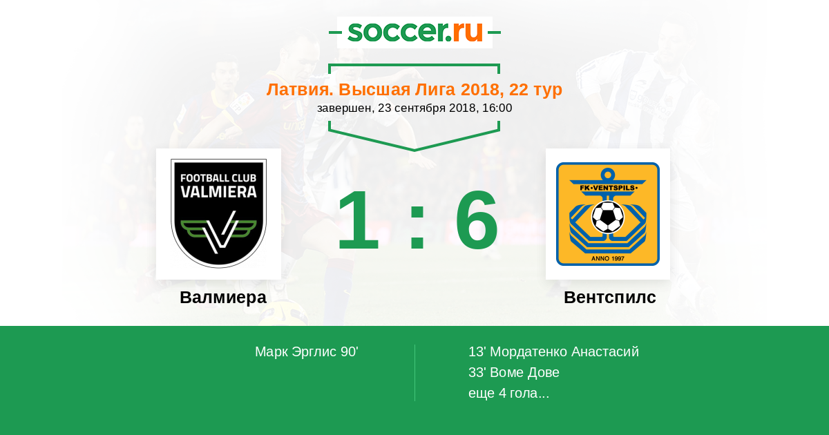 Протокол матча Валмиера против Вентспилс