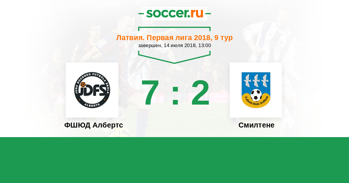 Латвия. Первая лига 19.09.2015 ФШЮД Албертс Логотип футбольный клуб ФШЮД Албертс (Рига) 2:1 Логотип футбольный клуб Смилтене Смилтене