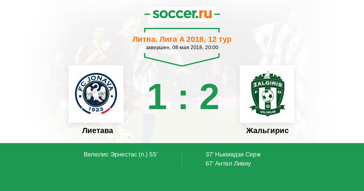Протокол матча Лиетава против Жальгирис