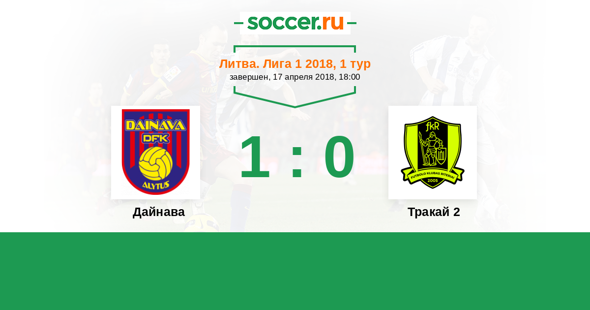 Литва. Лига 1 29.07.2018 Тракай 2 Логотип футбольный клуб Тракай 2 2:2 Логотип футбольный клуб Дайнава (Алитус) Дайнава