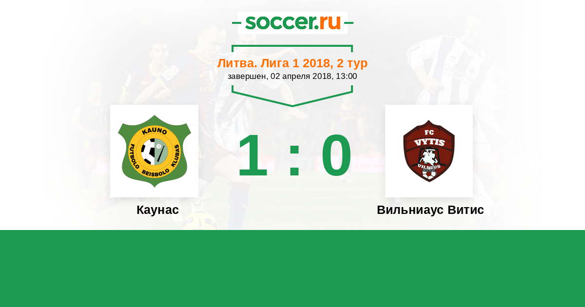Литва. Лига 1 04.08.2018 Вильниаус Витис Логотип футбольный клуб Вильниаус Витис (Вильнюс) 3:1 Логотип футбольный клуб Каунас Каунас