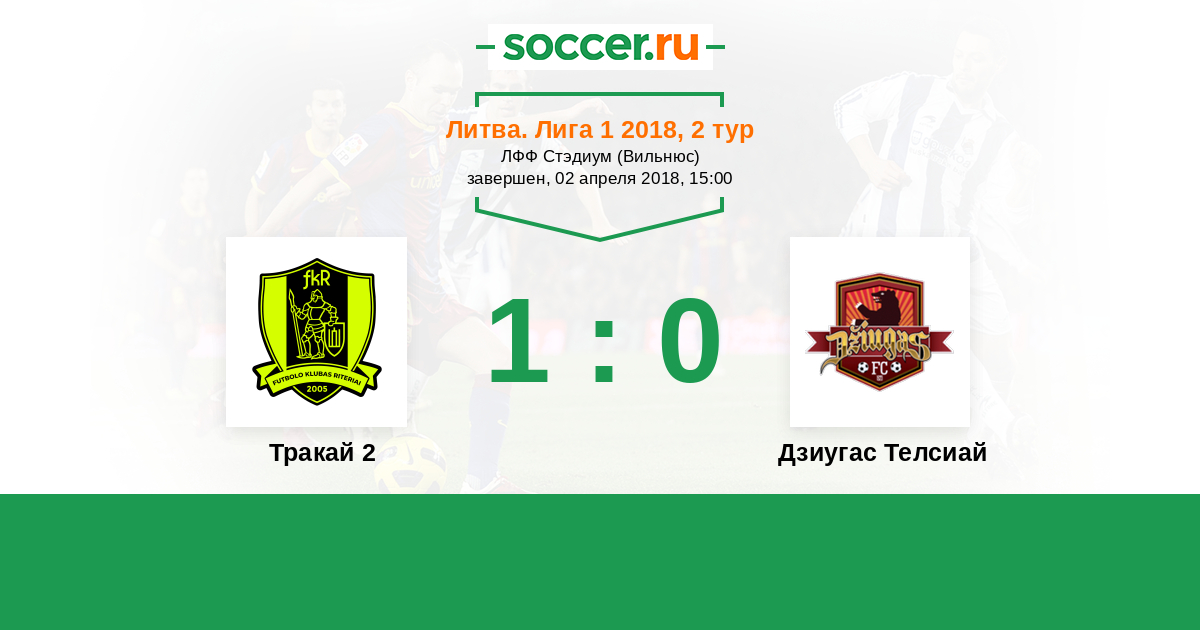 Литва. Лига 1 03.08.2018 Дзиугас Телсиай Логотип футбольный клуб Дзиугас Телсиай (Тельшай) 3:0 Логотип футбольный клуб Тракай 2 Тракай 2