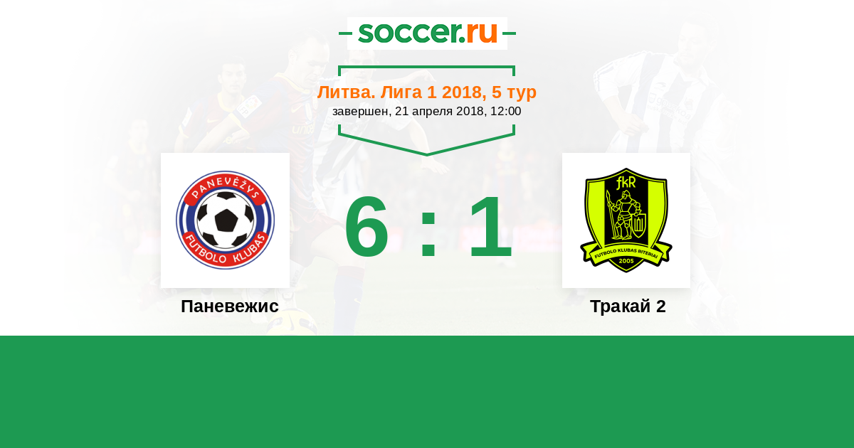 Литва. Лига 1 26.08.2018 Тракай 2 Логотип футбольный клуб Тракай 2 1:2 Логотип футбольный клуб Паневежис Паневежис