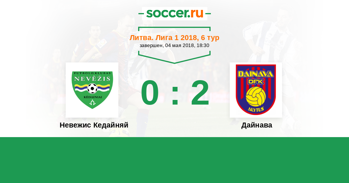 Литва. Лига 1 10.10.2018 Дайнава Логотип футбольный клуб Дайнава (Алитус) 4:1 Логотип футбольный клуб Невежис Кедайняй Невежис Кедайняй