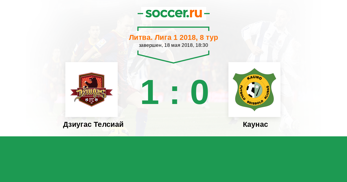 Литва. Лига 1 15.09.2018 Каунас Логотип футбольный клуб Каунас 2:3 Логотип футбольный клуб Дзиугас Телсиай (Тельшай) Дзиугас Телсиай
