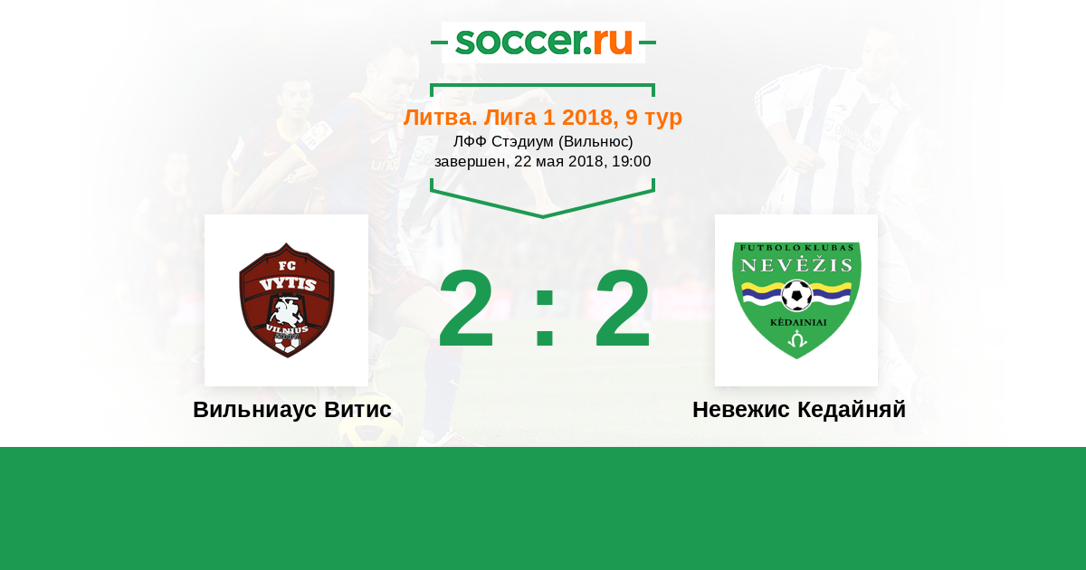 Литва. Лига 1 23.09.2018 Невежис Кедайняй Логотип футбольный клуб Невежис Кедайняй 1:1 Логотип футбольный клуб Вильниаус Витис (Вильнюс) Вильниаус Витис