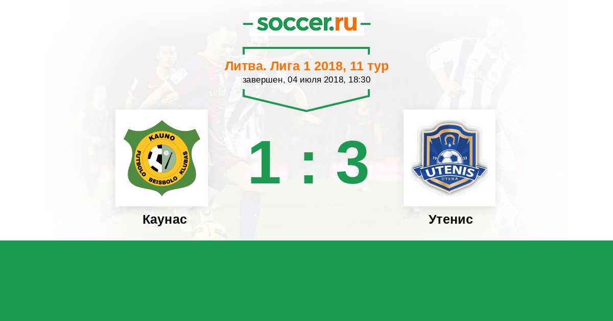 Литва. Лига 1 15.09.2018 Каунас Логотип футбольный клуб Каунас 2:3 Логотип футбольный клуб Дзиугас Телсиай (Тельшай) Дзиугас Телсиай