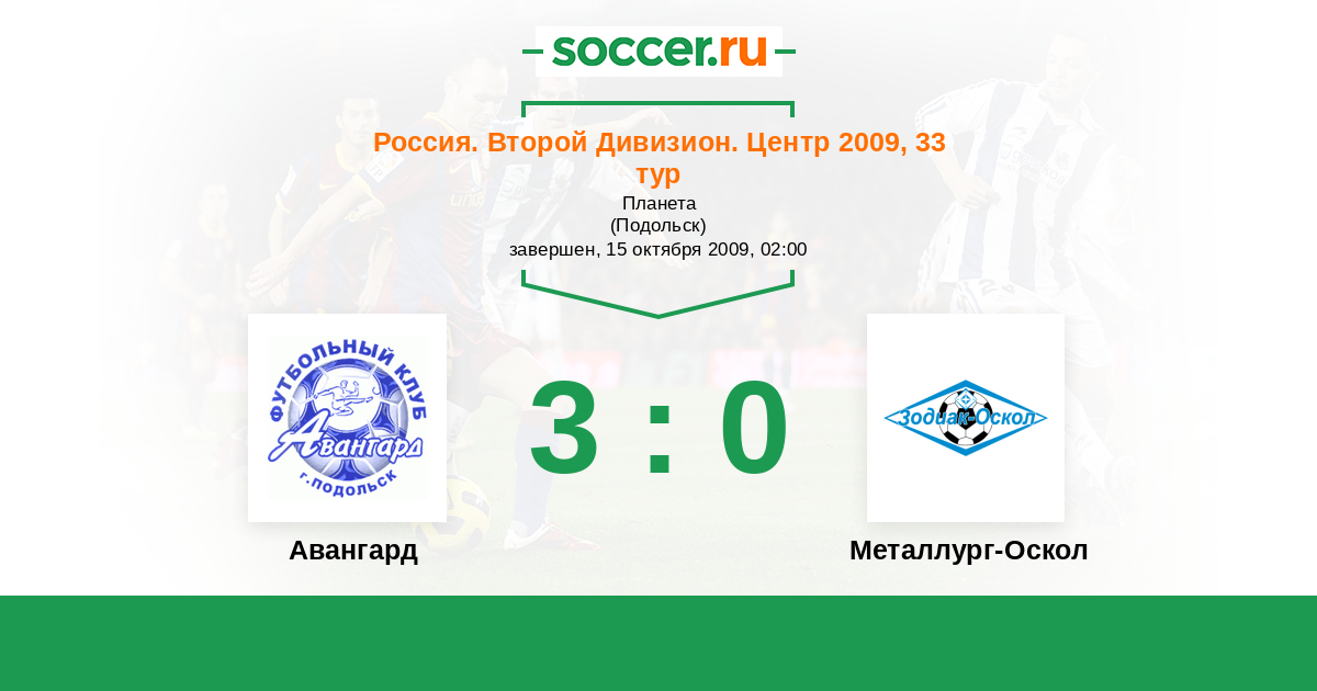 Россия. Вторая лига. Группа 3 15.07.2009 Металлург-Оскол Логотип футбольный клуб Металлург-Оскол (Старый Оскол) 2:1 Логотип футбольный клуб Авангард (Подольск) Авангард