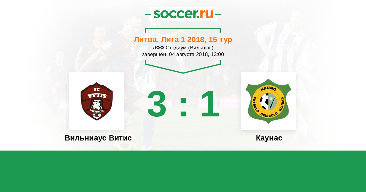 Литва. Лига 1 04.08.2018 Вильниаус Витис Логотип футбольный клуб Вильниаус Витис (Вильнюс) 3:1 Логотип футбольный клуб Каунас Каунас