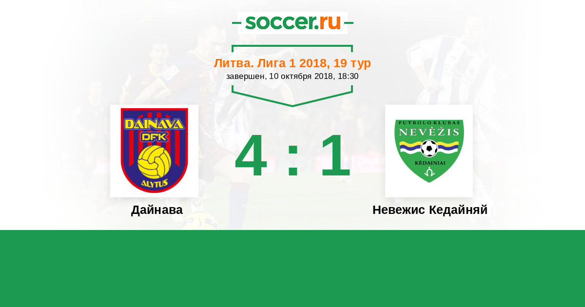 Литва. Лига 1 04.05.2018 Невежис Кедайняй Логотип футбольный клуб Невежис Кедайняй 0:2 Логотип футбольный клуб Дайнава (Алитус) Дайнава