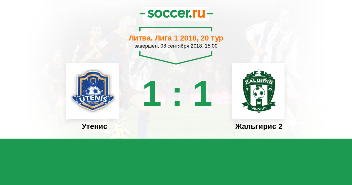 Литва. Лига 1 12.09.2018 Утенис Логотип футбольный клуб Утенис (Утена) 1:1 Логотип футбольный клуб Стумбрас 2 (Каунас) Стумбрас 2