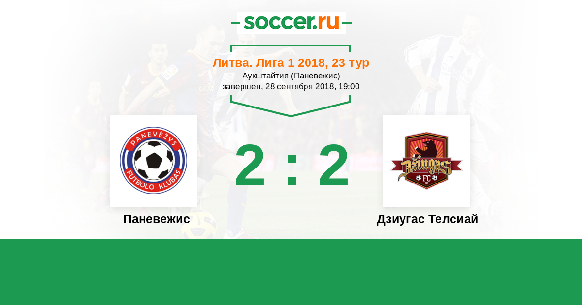 Литва. Лига А 31.10.2021 Паневежис Логотип футбольный клуб Паневежис 2:2 Логотип футбольный клуб Дзиугас Телсиай (Тельшай) Дзиугас Телсиай