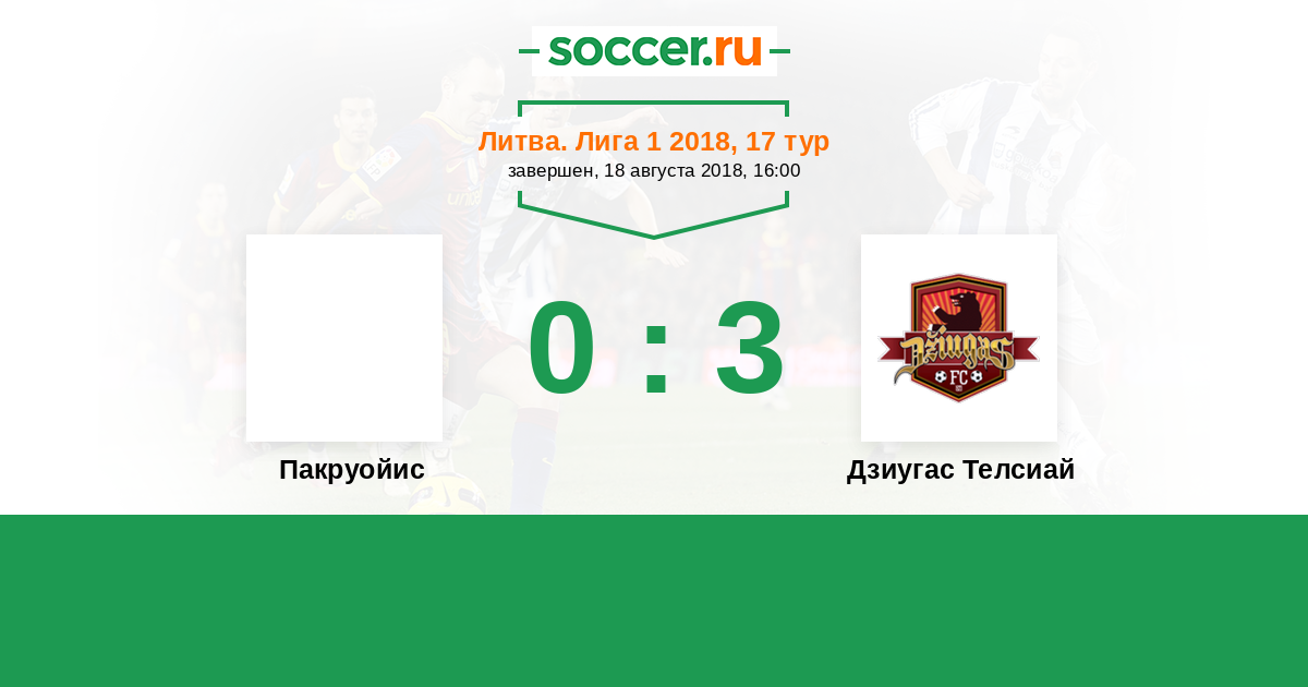 Литва. Лига 1 25.08.2018 Пакруойис Логотип футбольный клуб Пакруойис 0:0 Логотип футбольный клуб Каунас Каунас