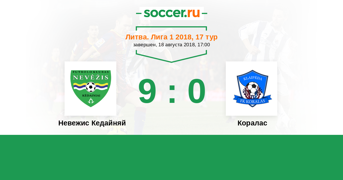 Литва. Лига 1 13.04.2018 Коралас Логотип футбольный клуб Коралас (Клайпеда) 0:7 Логотип футбольный клуб Невежис Кедайняй Невежис Кедайняй
