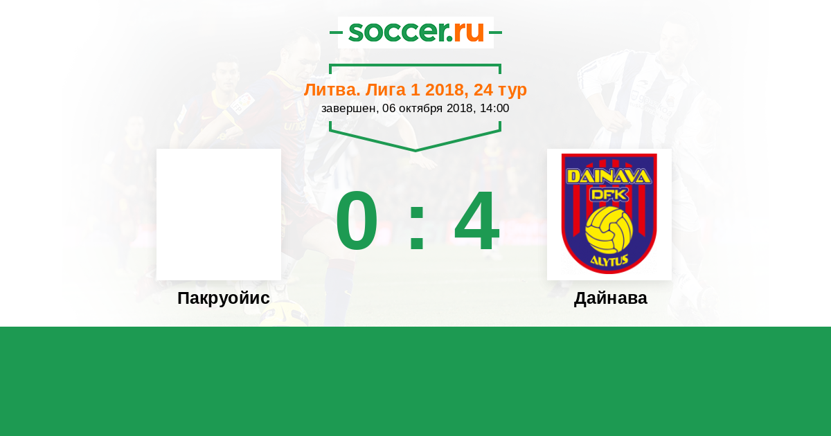Литва. Лига 1 06.10.2018 Пакруойис Логотип футбольный клуб Пакруойис 0:4 Логотип футбольный клуб Дайнава (Алитус) Дайнава