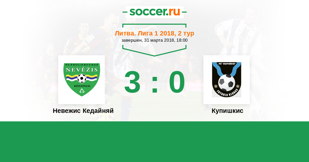 Литва. Лига 1 04.08.2018 Купишкис Логотип футбольный клуб Купишкис 4:0 Логотип футбольный клуб Невежис Кедайняй Невежис Кедайняй