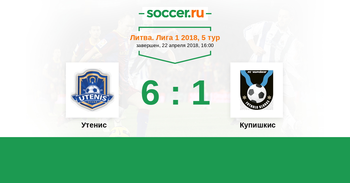 Литва. Лига 1 25.08.2018 Купишкис Логотип футбольный клуб Купишкис 1:3 Логотип футбольный клуб Утенис (Утена) Утенис