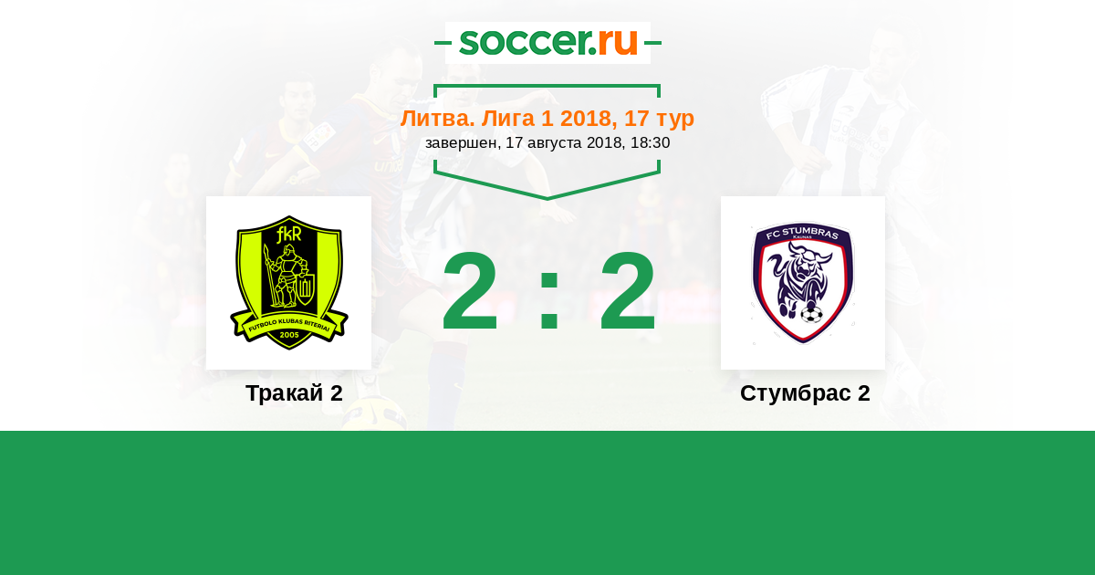 Литва. Лига 1 17.08.2018 Тракай 2 Логотип футбольный клуб Тракай 2 2:2 Логотип футбольный клуб Стумбрас 2 (Каунас) Стумбрас 2