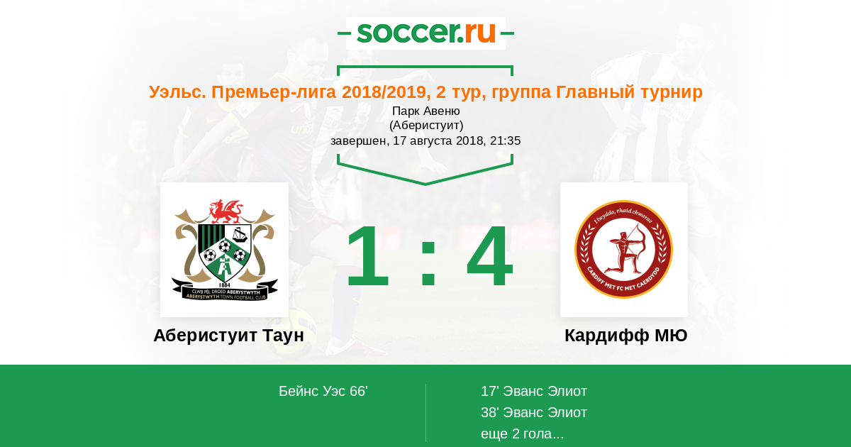 Протокол матча Аберистуит Таун против Кардифф МЮ