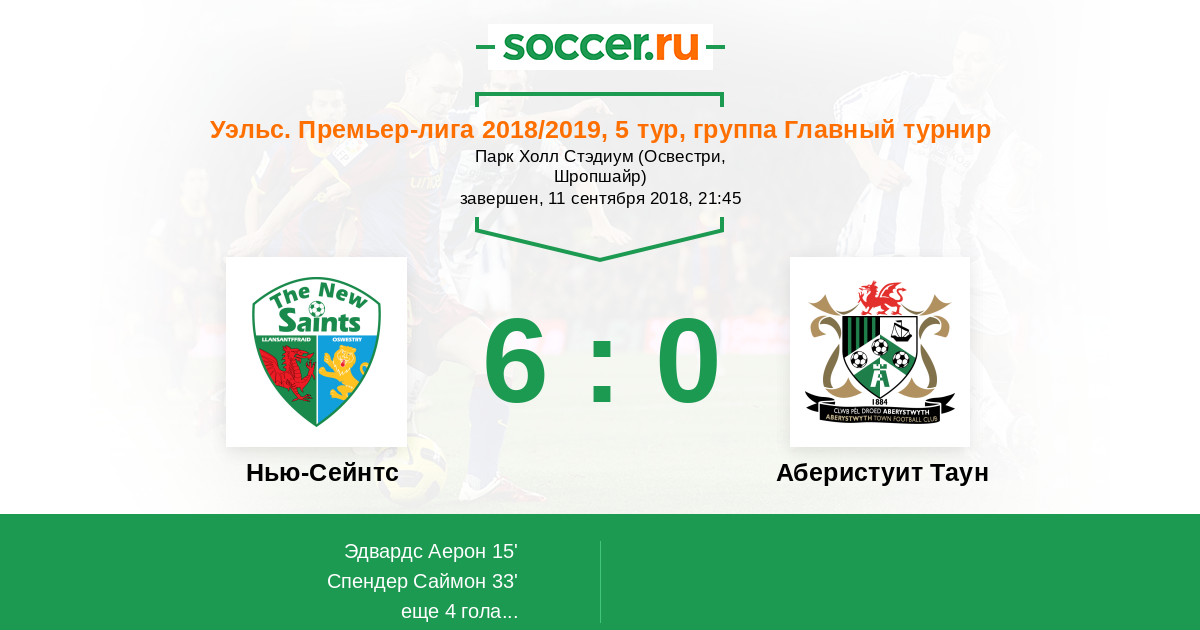 Протокол матча Нью-Сейнтс против Аберистуит Таун
