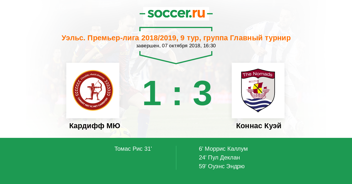 Протокол матча Кардифф МЮ против Коннас Куэй