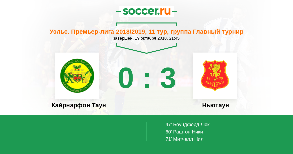 Протокол матча Кайрнарфон Таун против Ньютаун