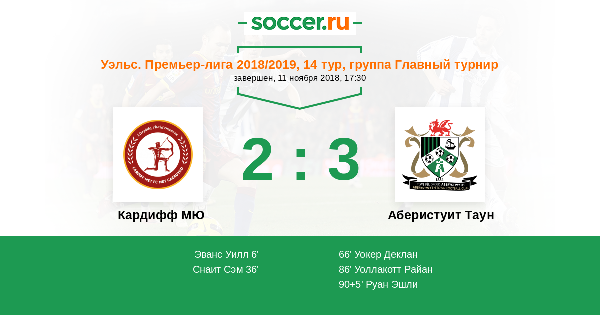 Протокол матча Кардифф МЮ против Аберистуит Таун