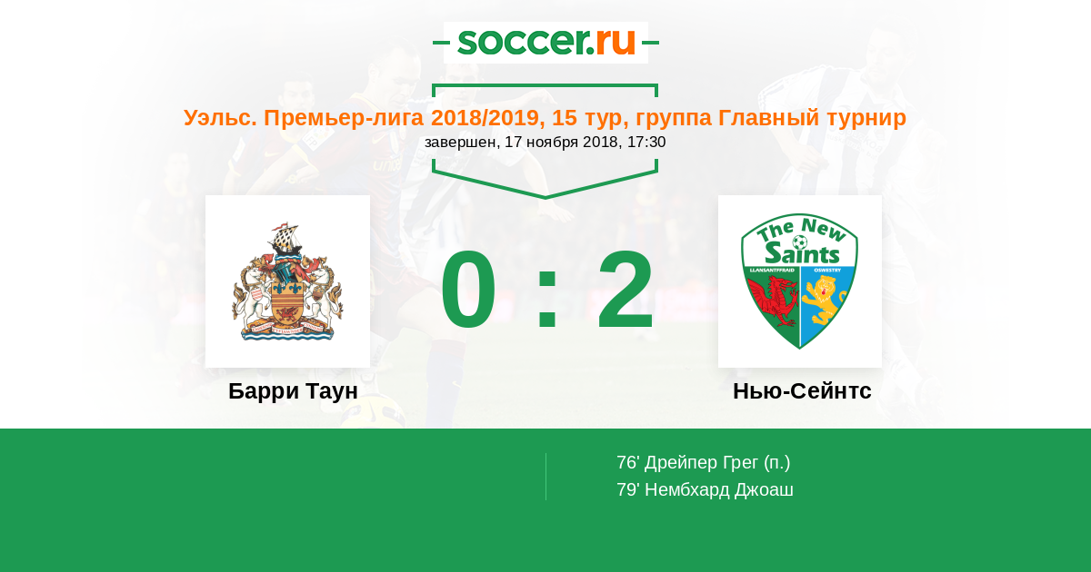 Протокол матча Барри Таун против Нью-Сейнтс