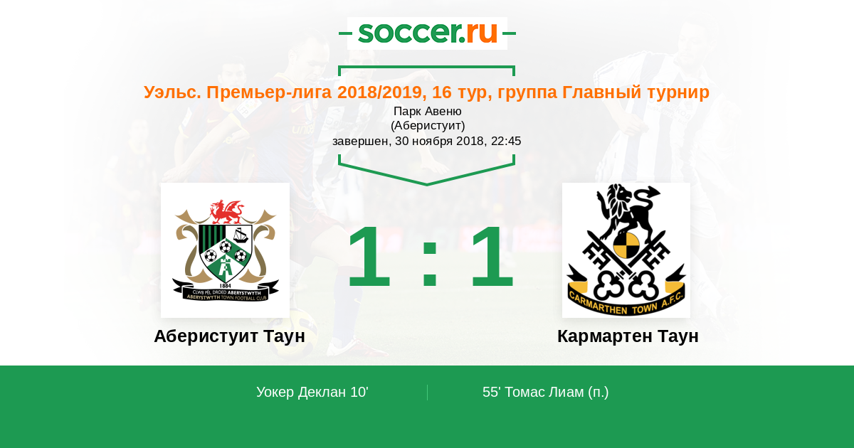 Протокол матча Аберистуит Таун против Кармартен Таун