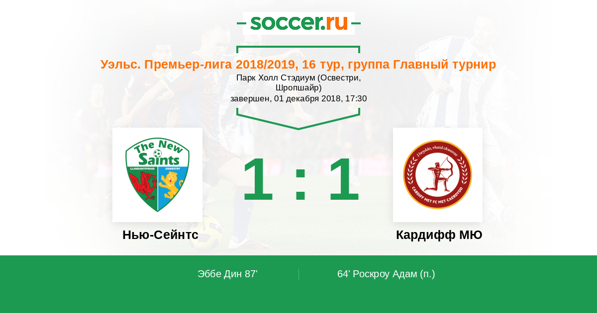 Протокол матча Нью-Сейнтс против Кардифф МЮ