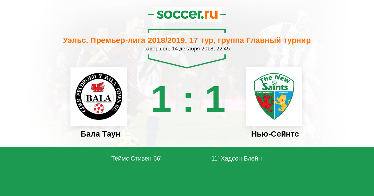 Протокол матча Бала Таун против Нью-Сейнтс