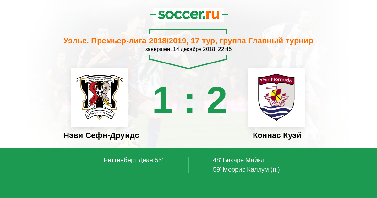 Протокол матча Нэви Сефн-Друидс против Коннас Куэй