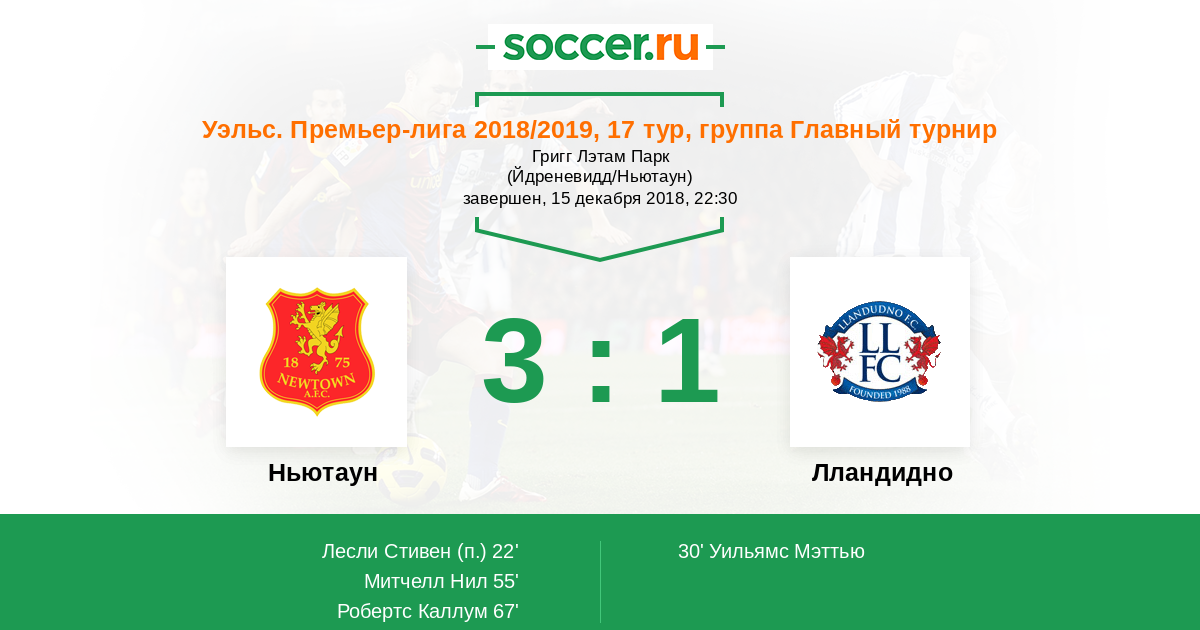 Протокол матча Ньютаун против Лландудно