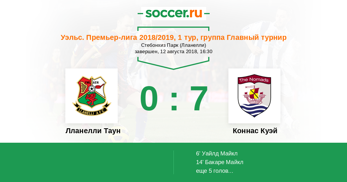 Протокол матча Лланелли Таун против Коннас Куэй