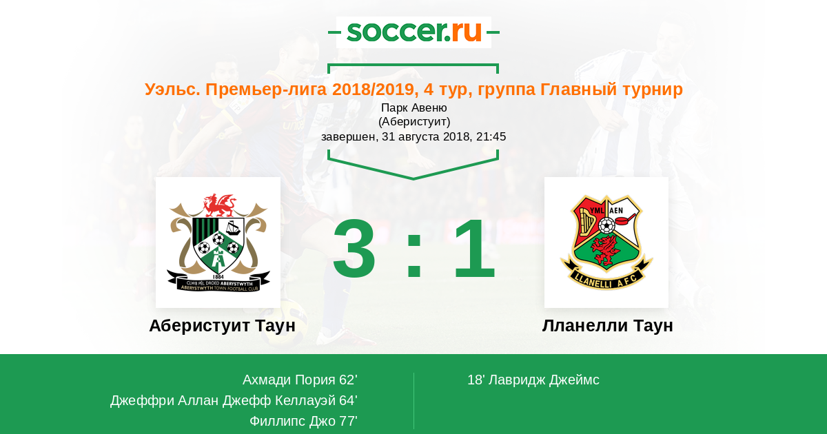 Протокол матча Аберистуит Таун против Лланелли Таун