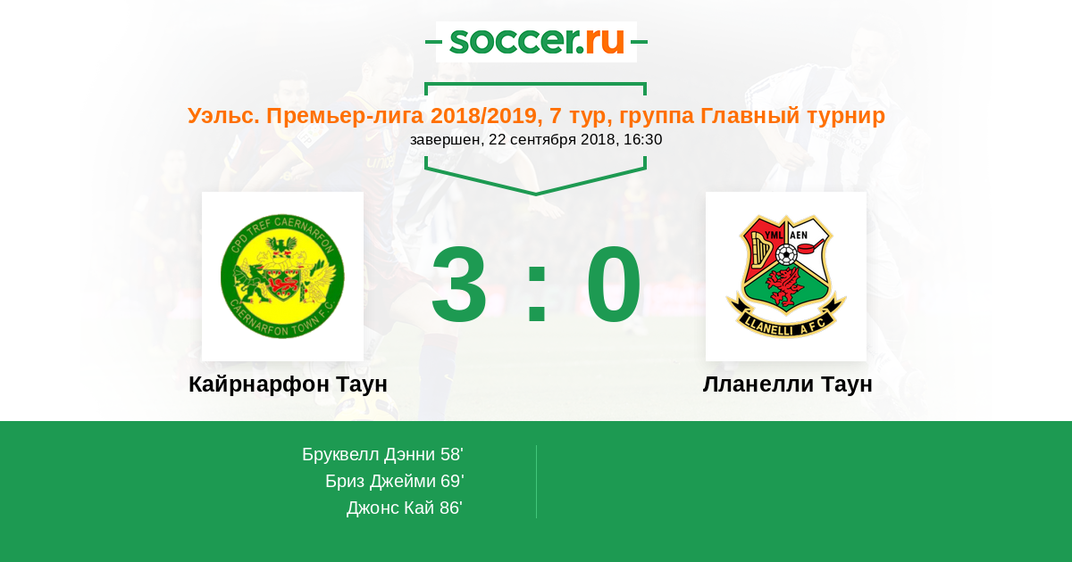 Протокол матча Кайрнарфон Таун против Лланелли Таун